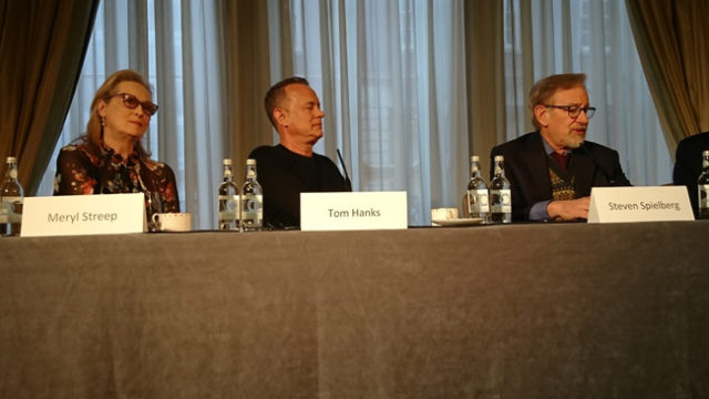 We attended the press conference — which was dominated by the conversation of women and in particular women within the industry, — in which filmmaker Spielberg along with Tom Hanks and Meryl Streep in attendance.