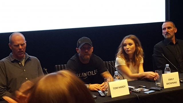 Ahead of the London premiere of Legend tonight down in Leicester Square, Tom Hardy, Emily Browning, Christopher Ecclestone and Director Brian Helgeland attended a press conference to talk about the film.