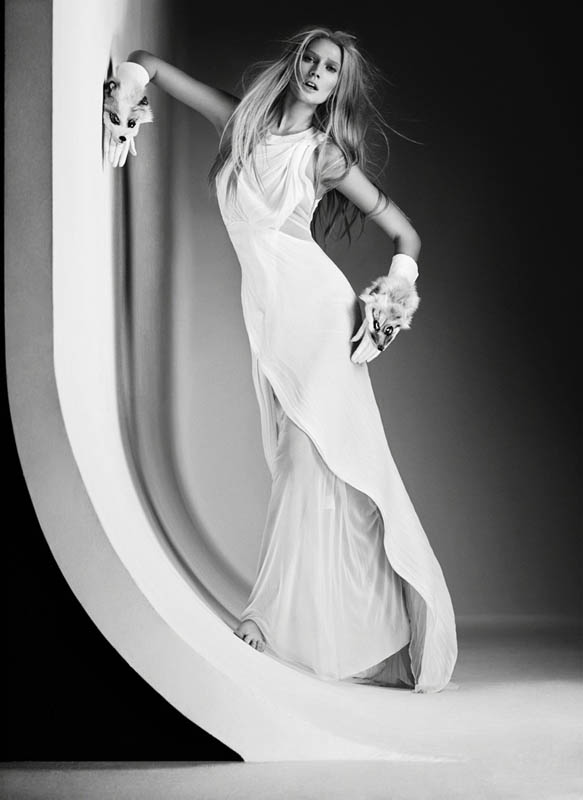 Photographed by Hunter & Gatti, Toni shows off her sexy and high fashion side in not only lingerie and body-con looks but also painted masks. The all white theme is simply lush so lush that we can’t stop viewing these images and as one of the women said in the office today “OMG I just turned into a lesbian”.