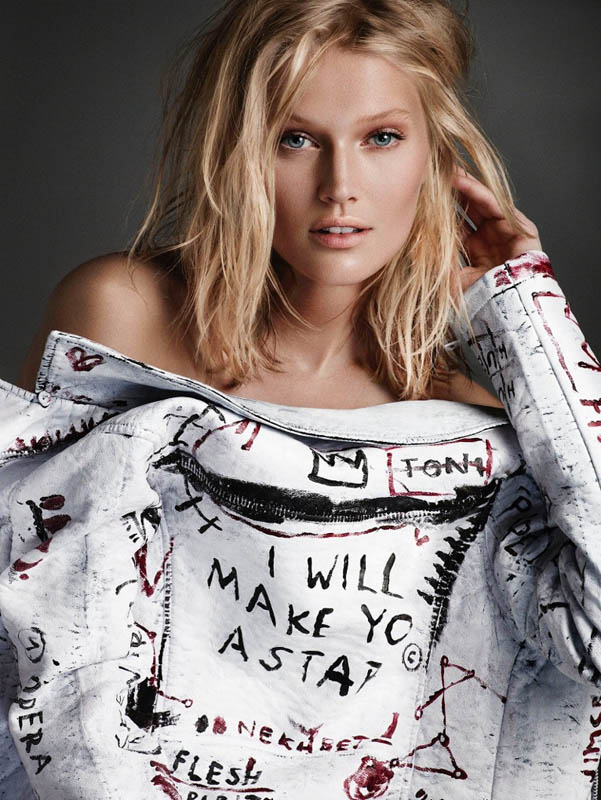 The creative duo was inspired by the work of Jean-Michel Basquiat, who also influenced their ‘I Will Make You a Star’ exhibit. Brandon Maxwell worked as stylist on the shoot with hair by Paco Garrigues and makeup by Niki M’nRay. Check out the images below of the HOT all white Toni Garrn.