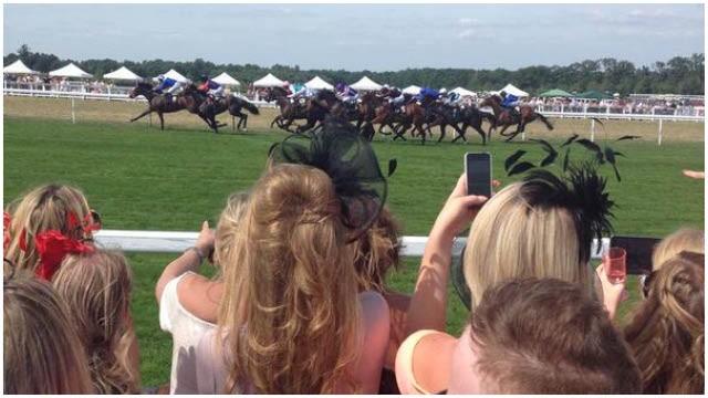 Next on the Topdeck Travel agenda was to welcome the queen onto the racecourse and there was a lot of hysteria (largely from me) when the Royal Highness glided past us further onto Ascot’s race course. As we made our way into the heaving course we were mesmerized by the outfits, some of grandeur, some so over the top that Katie Price would have rolled her eyes and some that needed a speaking too. Pimms was the secondary drink of choice today and if you were unlucky you were probably going to lose your eye with all the gigantic hat displays. With so much to look at we almost missed the first race which instantly got us into the frenzy we expected, and with that the bets were on. When one attends such an event there’s always that person who has the luck of the Irish, the one who hasn’t a clue, the one who’s only concern is the topping up of their wine glass and the one that has researched and got their game plan down.