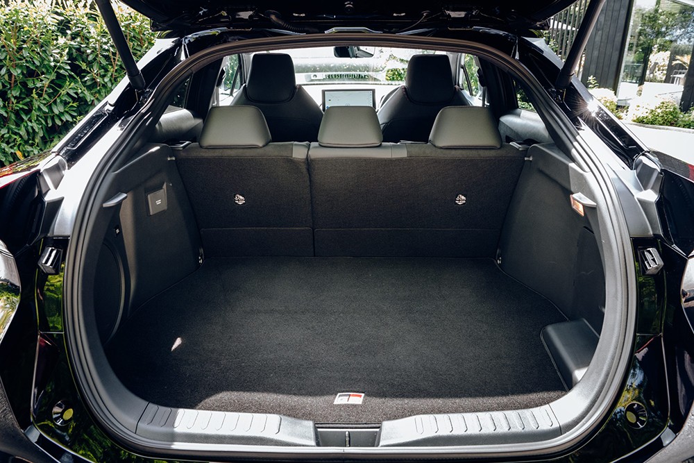 The large infotainment system is a standout, seamlessly integrated into the dashboard and offering intuitive controls. Ambient lighting adds a touch of sophistication and the linear lights that run across the door, subtly shift to red when detecting obstructions—a clever way to add a touch style to safety.