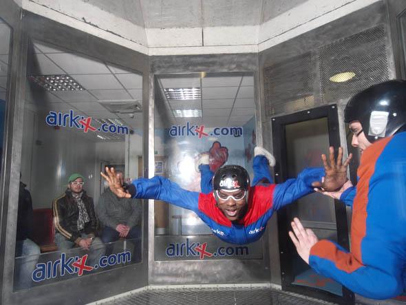 The last of the day’s activities saw us skydiving. Not out of a plane. In a wind tunnel indoors. First timers, groups or professional flyers are all welcome here. It’s simple and safe and there are instructors there to teach you the moves. You are led into a room where you are advised by a training video on what happens in the flight chamber. As air is circulated into the tunnel it is difficult to hear instructions so the video goes over hand signals that the instructor will give you.