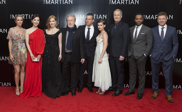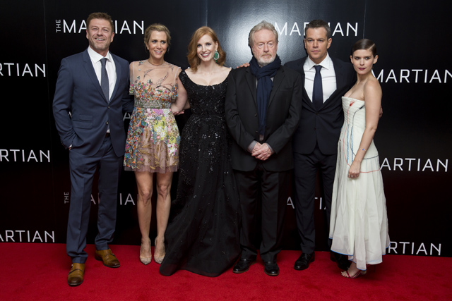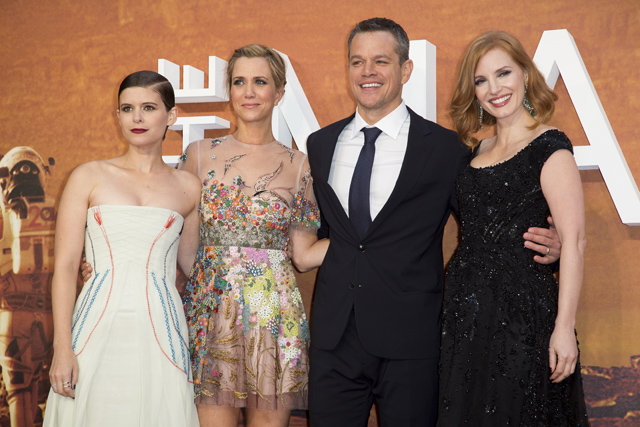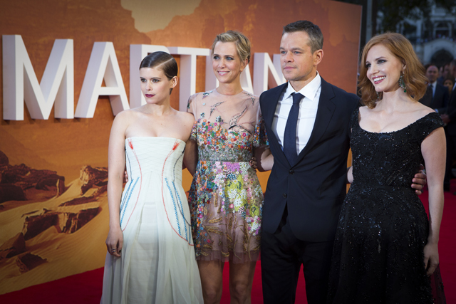 Matt Damon, Jessica Chastain, Kristen Wiig, Jeff Daniels, Michael Peña, Kate Mara, Sean Bean and more will make their way down the red carpet for The Martian UK premiere today at London’s, Leicester Square.