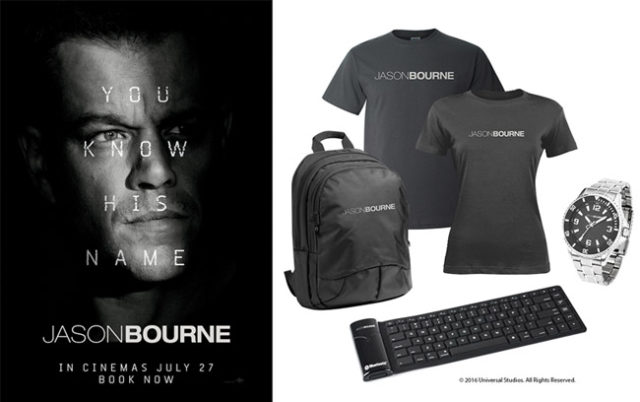 To celebrate the release of Jason Bourne in UK cinemas on Wednesday 27th July 2016, we’re giving away an exciting bundle of prizes including a branded ladies T-Shirt, men’s T-Shirt, rucksack, Bluetooth keyboard and a watch.