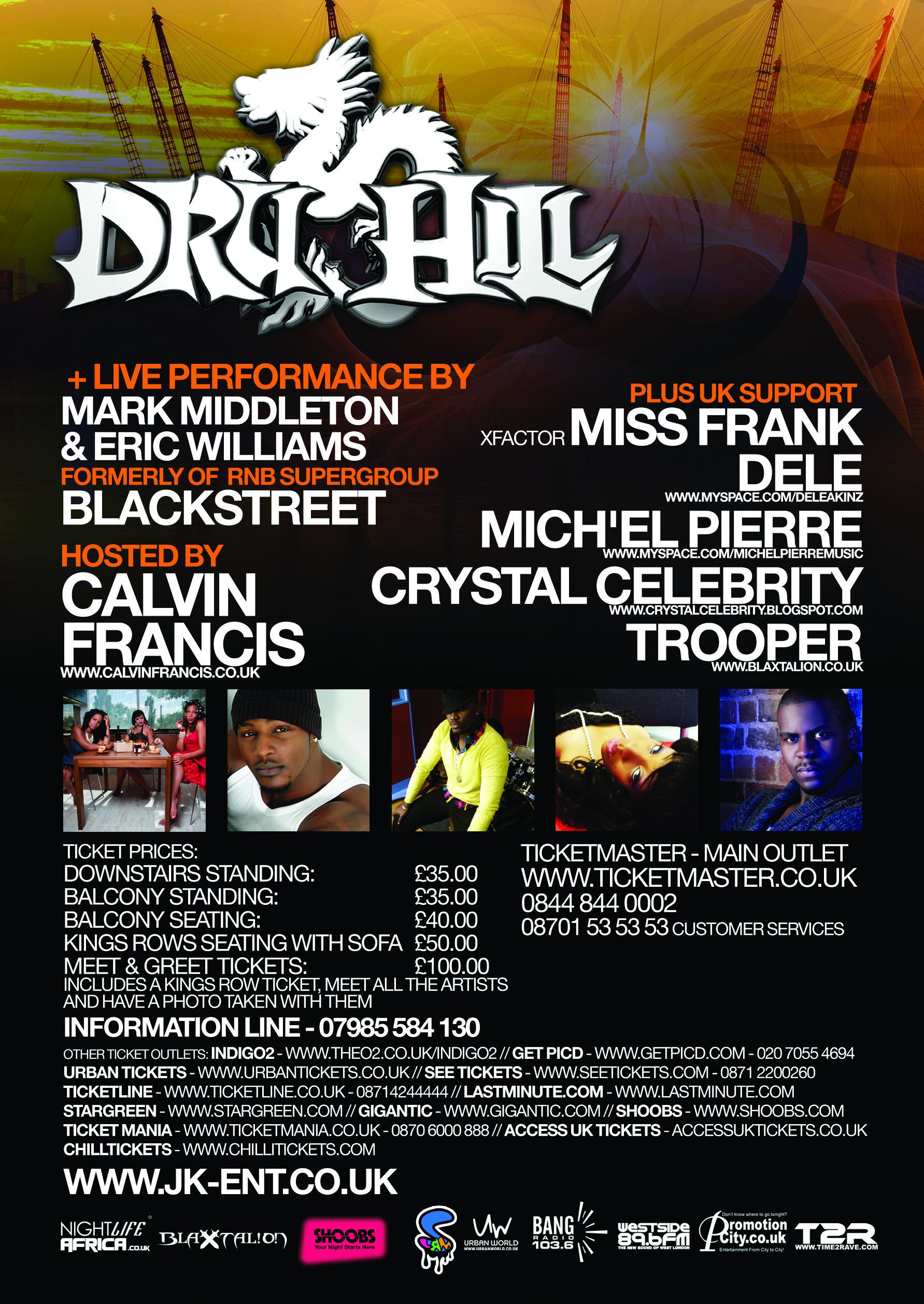 With Sisqo just completing a successful spell in the 2009 Big Brothers house and the highly awaited new Dru Hill Album (InDRUpendenceDay) being released on 27th July 2010, be sure not to miss out on this amazing show. There’ll also a huge special guest performance from Mark Middleton & Eric Williams ( Former members of legendy R’n’B group Blackstreet) who’ll perform a number of hits such as: Dont Leave, No Diggity and many more.