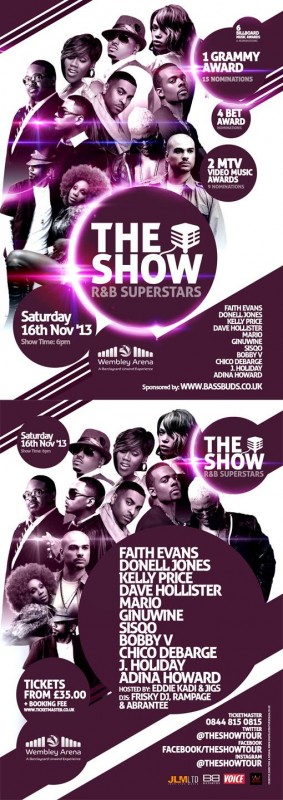 The Show: R&B Superstars returns to London’s Wembley Arena on 16th November 2013 with yet another sensational line-up of R&B legends. Presented by Just Live Music Group, The Show: R&B Superstars looks set to be the UK’s biggest R&B music event following the phenomenal sold out show earlier this year and we have a pair of tickets to giveaway to one reader courtesy of BassBuds.